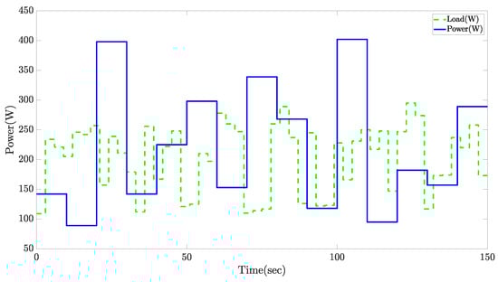 We conducted testing and evaluation on three different types of controllers, namely PI (implemented according to [35]), fuzzy, and PSO-based fuzzy controllers. To compare the results of our proposed controller, the PSO-based fuzzy controller, with the other two controllers, we require a load and power benchmark. The information regarding the load and source power used in our system is provided in Figure 11. In the subsequent sections, we compare the results of our proposed controller in this paper with the other two controllers.