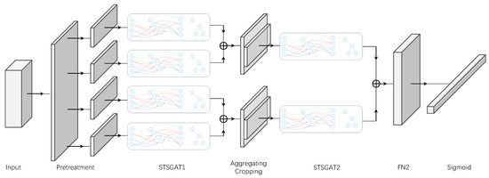 PDASTSGAT architecture. Our PDASTSGAT consists of an input layer, an output layer, and multiple spatiotemporal synchronous graph attention neural networks (STSGATs) with aggregating and cropping layers.