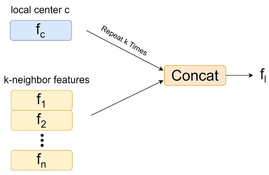 After obtaining the local information, we perform feature expansion (Figure 4) to obtain the features of the local points. These are obtained by repeating the centroid point k times and concatenating it with the local features.