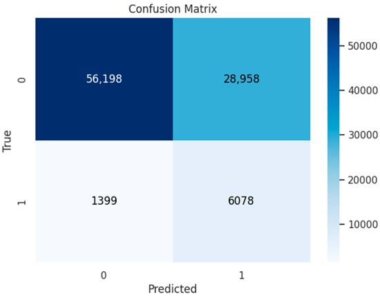 As depicted in Figure 6, this combination proves highly advantageous, facilitating the detection of a significant number of positive cases—an invaluable asset for the healthcare sector by identifying 6548 out of the total 7477 individuals at risk.