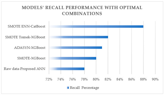 Models’ recall performance with optimal combinations per resampling technique.