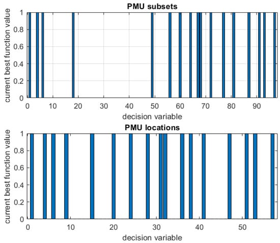 Optimal PMU placement models are suggested where the PMU number is found when a linear or quadratic cost function is optimized subject to several topological or numerical observability constraints in [37,38,41,42,51]. The decision vector ranges in either a binary or a continuous domain [37,38,41,51].