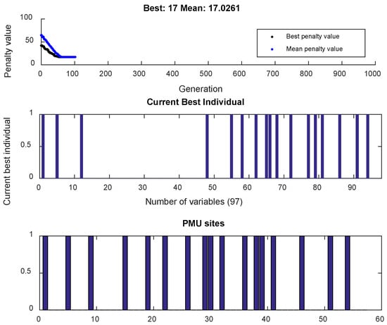 Our aim is to reconsider the ILP-based model under a limited PMU number [56,57,58] in the YALMIP environment [37,38]. GA and BSPO are able to handle the ILP model’s constraints, and finally an equivalent nonlinear model is given to find optimality.
