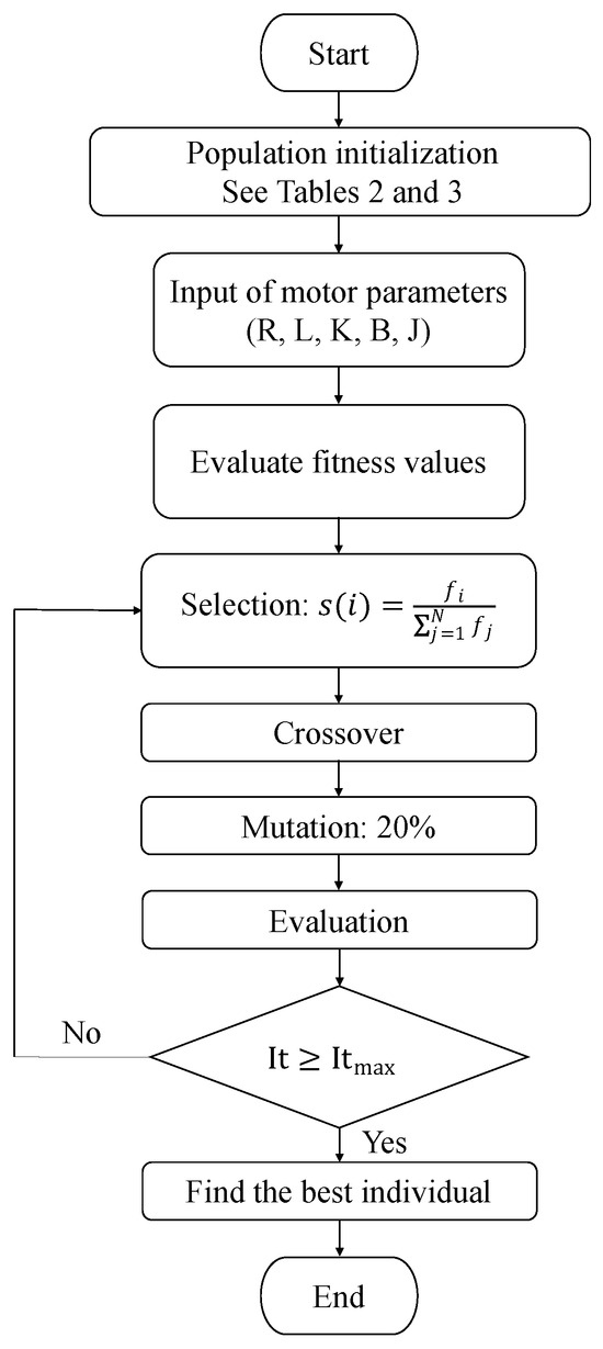 - Amiri, M.S.; Ibrahim, M.F.; Ramli, R. Optimal parameter estimation for a DC motor using genetic algorithm. Int. J. Power Electron. Drive Syst. (IJPEDS) 2020, 11, 1047–1054. [Google Scholar] [CrossRef]