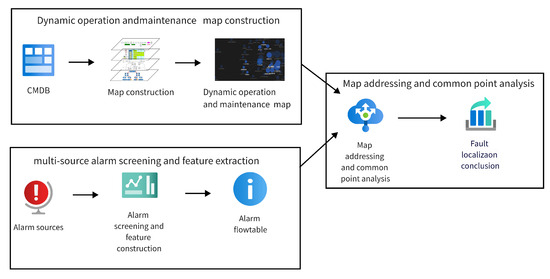 The model is divided into three main modules: dynamic operation and maintenance map construction, multi-source alarm screening and feature extraction, and map addressing and common point analysis. This method is based on dynamic operation and maintenance maps and various professional alarm source data, with complete fault coverage types. Compared with methods that lack topological information and indicator correlation analysis, it has obvious advantages in accuracy. At the same time, due to the aggregation and simplification of alarm redundancy information in the alarm feature extraction process, the common point analysis logic itself is relatively concise, leading to this method having obvious advantages over knowledge graphs and other methods.