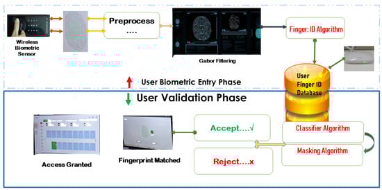 The access system utilizes a deep learning classifier/matching algorithm to compare the extracted features with reference templates stored in a database as displayed in Figure 4 within the edge network []. This enables the complete validation of user data to describe their accuracy, or otherwise, of the fingerprint.