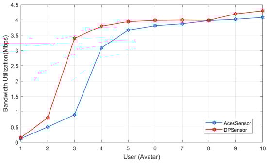 In terms of bandwidth utilization, edge network devices as well as IoT devices are displayed in Table 2. The AccesSensor matched and granted access to users 1–4, utilizing lower bandwidths of 0.12, 0.5, 0.9, and 3.087 Mbps, respectively, to obfuscate the validated fingerprints. Conversely, the DPSensor utilized a higher bandwidth of 0.15, 0.8, 3.4, and 3.8, respectively, to match, validate and carry out noise addition as a privacy measure. For users 5 to 10, the result is different as it requires more for noise addition. This clearly shows the AccesSesor’s edge over the DPSensor as represented in Figure 10.