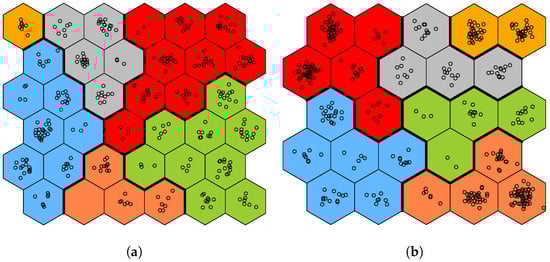 - Kohonen, T. Self-organized formation of topologically correct feature maps. Biol. Cybern. 1982, 43, 59–69. [Google Scholar] [CrossRef]
