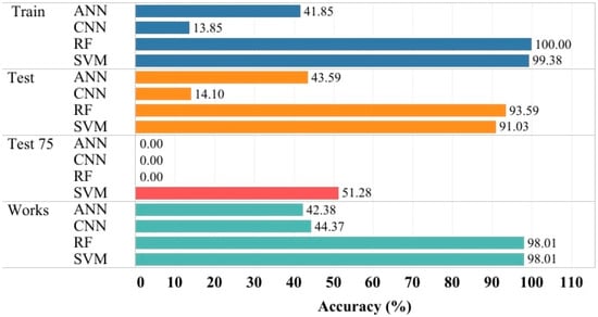 The Python programming language and related libraries were used. Specifically, Scikit-Learn library was used to work with SVM and RF, and the Keras library in TensorFlow framework to work with ANN [34,35].