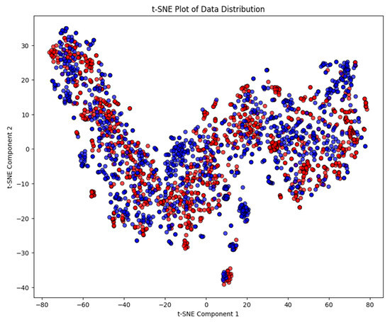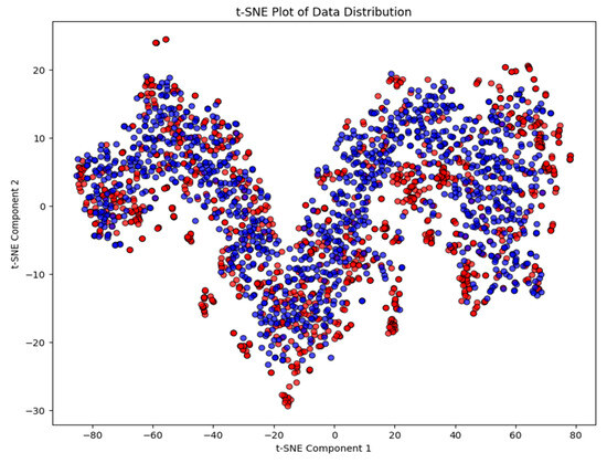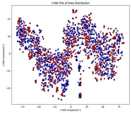 We also generated t-SNE graphs in Figure 5, Figure 6 and Figure 7 for the Antifp_DS1, Antifp_DS2, and Antifp_DS3 datasets to explore the importance and contribution of different features. Here we choose t-SNE to investigate feature importance since it was demonstrated as a better candidate than principal component analysis (PCA) in similar studies [46]. By plotting the t-SNE, we can visualize the data in a reduced space, which helps us to identify which features are most relevant for distinguishing between different data points [47]. By visualizing the distribution of instances in the reduced space, we can also assess the quality of the feature selection process [48].