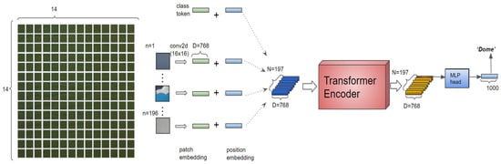 67], which has acquired attention recently in the field of image analysis, especially for anomaly detection in images. ViTs deviate from the conventional deep learning models by employing self-attention mechanisms rather than the traditional convolutional layers, enabling them to capture the global dependencies among image patches effectively. This model processes an image by dividing it into non-overlapping patches, which are then projected into vectors through linear projection. The integration of positional encodings with these patch embeddings ensures that the model retains the spatial context of the image, which is crucial for understanding the global layout of the image components. In contrast to traditional methods, a ViT’s self-attention mechanism in the transformer encoder enables it to concentrate on various regions of the picture according to contextual importance, which enables a more comprehensive and nuanced analysis.