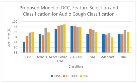 | DCC + EFA + arc-cosine ELM | 110 acute asthma, 247 healthy, 241 COVID-19 and 244 heart failure | 98.93% |