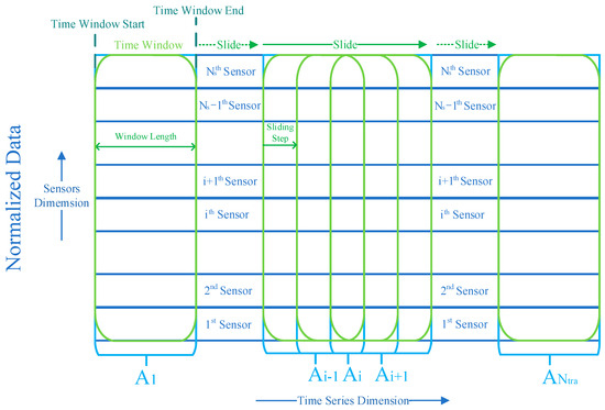 Firstly, the raw monitoring data are transformed and divided to a training dataset and a testing dataset, as shown in Equations (7) and (8), where represents sequence length of the data.