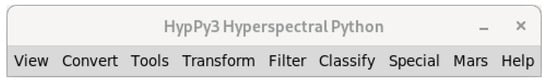 The HypPy top-level menu can be used to start the GUI program tkEdgy.py. The Edgy filter can be found as a ‘Spatial–Spectral Edge Filter’ in the ‘Filter’ menu.