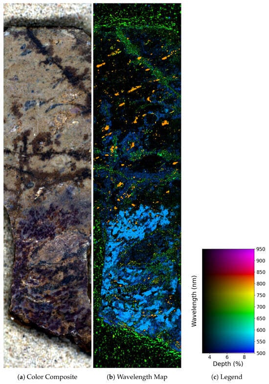 Mapping physical properties from hyperspectral images is complicated and frequently depends on the accessibility of spectral libraries of the target materials. Many existing methods depend on the subjective decisions of the interpreter for the selection of endmembers and the postprocessing of rule images. If no prior information is available, information should be extracted by the characterization of spectral absorption features. In van Ruitenbeek et al. [], they describe a method called the wavelength mapper (see Section 2.4.4) to automatically determine the minimum reflectance within a wavelength range. We conclude that the wavelength mapper proves to be a useful tool for unbiased endmember selection, mineral mapping, and the interpretation of areas demonstrating zonation of mineral alterations using hyperspectral imagery. The usefulness of the wavelength mapper has already been recognized in other research. For instance, it was used to map mineral outcrops of lithium-bearing pegmatites in a pilot quarry located near Uis, Namibia [].