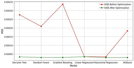 A comparison of the mean square error (MSE) results before and after optimizing the models is shown in Figure 12.
