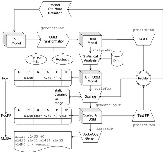 Instead of performing software model transformations to map a model using arithmetic A defined by an accuracy, value, and dynamic range, on a model using arithmetic B with lower accuracy and reduced value and dynamic ranges, the model can be mapped on a dedicated hardware architecture, providing the elementary core operations of ML models, as described by [