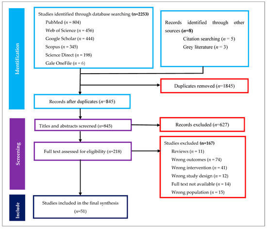 - Page, M.J.; McKenzie, J.E.; Bossuyt, P.M.; Boutron, I.; Hoffmann, T.C.; Mulrow, C.D.; Shamseer, L.; Tetzlaff, J.M.; Akl, E.A.; Brennan, S.E.; et al. The PRISMA 2020 statement: An updated guideline for reporting systematic reviews. BMJ 2021, 372, n71. [Google Scholar] [CrossRef]