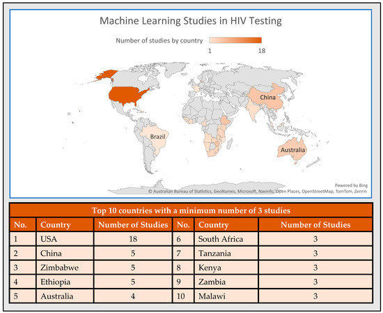 - Chikusi, H.; Leo, J.; Kaijage, S. Machine Learning Model for Prediction and Visualization of HIV Index Testing in Northern Tanzania. Int. J. Adv. Comput. Sci. Appl. 2022, 13, 391–399. [Google Scholar] [CrossRef]