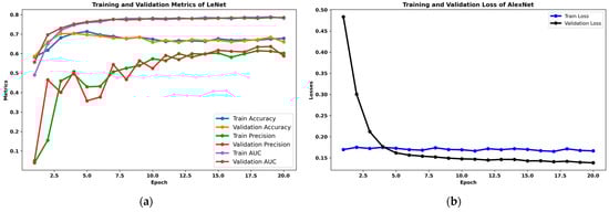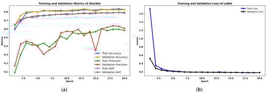 AlexNet was first introduced in 2012 by Alex Krizhevsky et al. [], which introduced the ReLU activation function and used dropout layer to overcome overfitting []. AlexNet consists of eight layers: five Conv layers, among which the first, second, and fifth are followed by max-pooling layers, and three fully connected layers. All layers use ReLU activations except the output layer, which included the SoftMax activation function. To capture hierarchies in the data, this model makes use of the filters’ depth and stride. However, because it has an extensive number of parameters, computation costs are high.