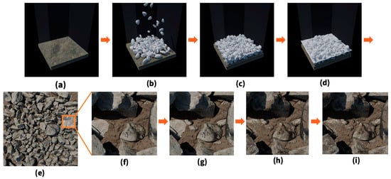 To guarantee that the generated digital scene accurately represents real-world ballast samples encountered in the field, a robust physics simulation and rendering workflow were meticulously designed, illustrated in Figure 4.