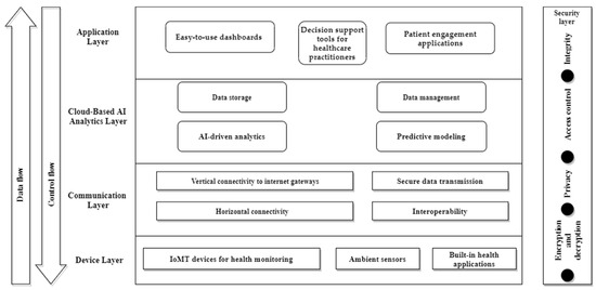 - Data storage and management manages various datasets, such as medical records, IoMT device outputs, cognitive assessments, and open databases. This centralized process facilitates longitudinal data analysis while ensuring a comprehensive patient profile;