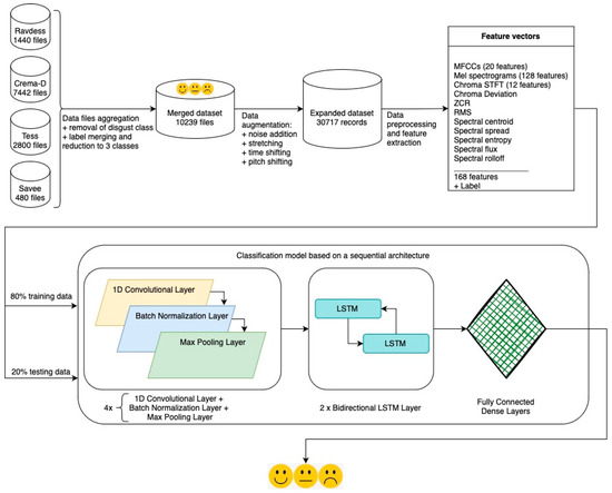 - Aouani, H.; Ayed, Y. Ben Speech Emotion Recognition with Deep Learning. Procedia Comput. Sci. 2020, 176, 251–260. [Google Scholar] [CrossRef]