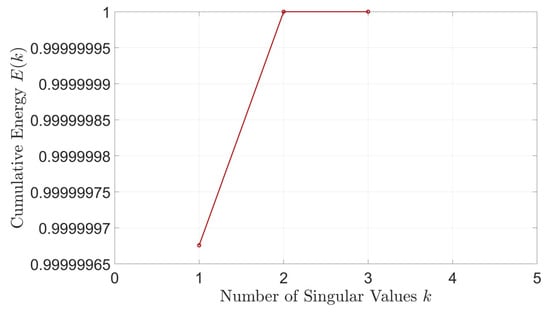 In the fourth step of the algorithm regarding the selection of , we will plot the variation of the cumulative energy of the singular values with the increase of the number of singular values, and select the r whose is at least greater than .