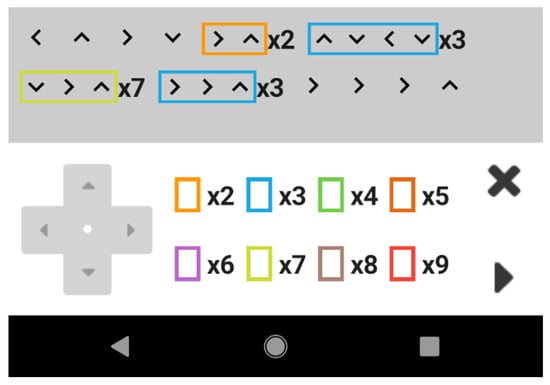 Users can also make loops with a certain number of iterations, aiming to minimize the number of movement commands. Upon identifying a recurring pattern, the user can employ a loop to execute it, gaining insight into the practicality and efficacy of loops. The user selects these commands also by clicking on the appropriate button in the command area as shown in more detail in Figure 4.