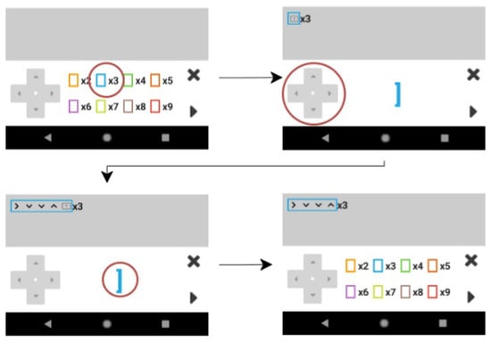 Example of loop creation using the available commands. First, a player selects an adequate command representing the number of iterations (upper left), which is followed by entering the movement commands through the controller.
