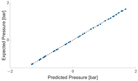 where (3) allows us to compute the output of the neural unit, is an input, is a weight, b is the bias, and f is the activation function. In more detail, in (5), is the weight associated with the i-th neuron input and the j-th neuron output ; is the bias of the j-th neuron. In (6), is the bias of the k-th output; is the weight associated with the j-th hidden layer input and the k-th output. The function in (4) is the activation function used in the present study and introduces nonlinearity in the system. The computations in (5) and (6) represent the feedforward operations for the hidden layer and the output layer, respectively. They describe the propagation of data to compute the output. Here, is the neuron output of the j-th hidden layer; is the k-th output. Equation (7) describes the backpropagation, namely, the error computation to update the weights: is the learning rate and the error between the network output and real data.