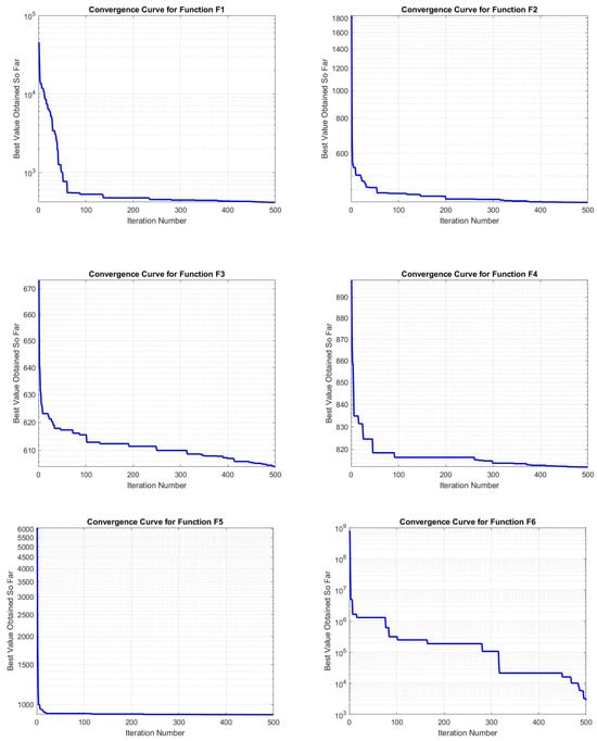 Error measure box plot analysis over CEC2017 benchmark functions (F1–F6).