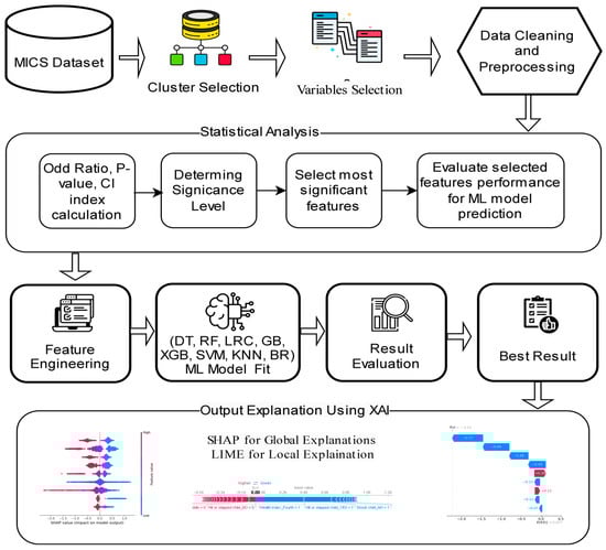 The Bangladesh Bureau of Statistics and the Ministry of Planning, with assistance from UNICEF, conducted the MICS 2019 in Bangladesh. The survey comprises clusters covering health, education, nutrition, water and sanitation, child health, and socioeconomic factors. The research population estimated several indicators on the status of children and women nationwide, in both urban and rural areas, in eight divisions and sixty-four districts. Initially, the total number of household samples was 64,000. The report BBS and UNICEF Bangladesh 2019 provides a comprehensive explanation of the survey methodology, which includes details on the calculation of the sample size. The dataset used in this research is publicly available from the MICS 2019, with permission from the UNICEF MICS team, and adheres to ethical standards, ensuring participant anonymity through de-identification and aggregation. To obtain access to the dataset initially, we had to obtain permission from the UNICEF MICS team. Thus, we sent them an email explaining our study plans, and in response, they gave us a link to access the dataset. Furthermore we addressed potential model biases by selecting features based on statistical relevance and employing XAI techniques for transparency, fairness, and interpretability. This approach helps identify and mitigate biases, ensuring robustness in the findings.
