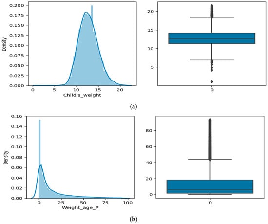 Analysis of numerical features (a) Child’s_weight and (b) Weight_age_P.