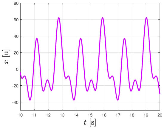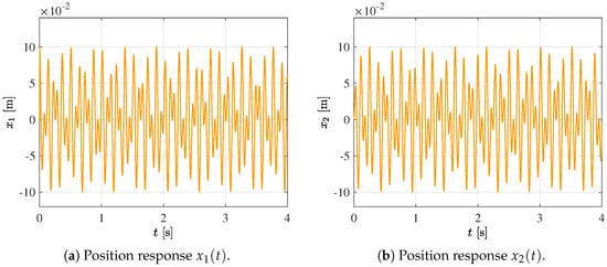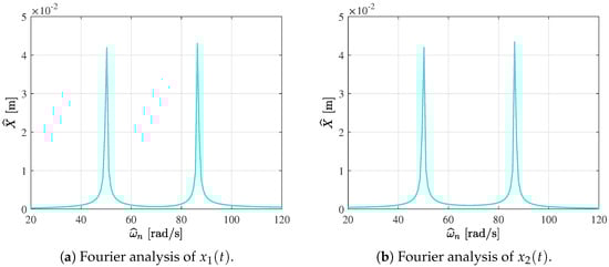 The second case study examines a two-degrees-of-freedom mechanical vibrating system, where a detailed comparison is made between the mathematical development of the vibratory components and their decomposition using the HHT, VMD, and the hybrid EMD–VMD method. This allows for an evaluation of how the hybrid approach improves the estimation of natural frequencies and provides a more accurate understanding of the system’s vibratory response.