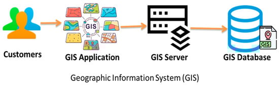 A GIS stands for a Geographic Information System. It is a system intended to catch, store, manipulate, analyze, and manage current geographical data [], as illustrated in Figure 1.