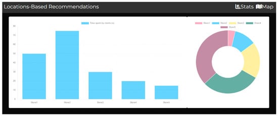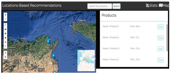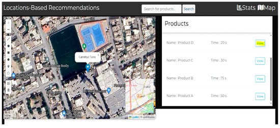 The system’s performance in processing both spatial and temporal data in real-time represents an advancement in recommendation technology. The integration of multiple development languages and databases has created a robust platform capable of handling complex geographical calculations while maintaining system responsiveness. Users now have a better knowledge of product placements and engagement patterns due to the web application’s ability to display temporal data with geographic mapping. The efficiency of the scoring system in integrating customer evaluations and geographic distance (δ = 0.7 and σ = 0.3) shows that the framework can provide accurate, location-aware suggestions while preserving computational efficiency. The importance of computational efficiency in GIS-based systems has previously been discussed by the authors in the Related Work section, who stress that location-aware applications require real-time processing. This is further supported by our results, which demonstrate the scalability of our methodology in large-scale retail environments.