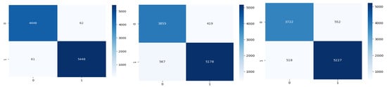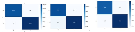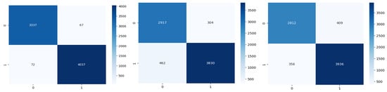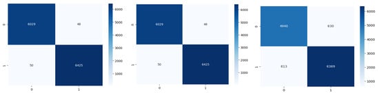 Figure 6 shows the confusion matrices obtained in the testing process of all three models. SynthSecureNet made 12,454 correct predictions and only 98 wrong predictions, demonstrating its effectiveness in accurately classifying violent and non-violent activities.
