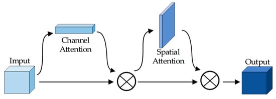 The attention module fuses the features extracted by the encoder with the features in the decoder to better preserve details and important information. This paper adopts the CBAM (Convolutional Block Attention Module) attention mechanism to independently infer the attention map through the channel attention and spatial attention modules, thereby enhancing the transmission of feature information. As shown in Figure 7, the channel attention mechanism calculates the importance of different channels of the input feature map through global average pooling and maximum pooling, while the spatial attention mechanism assigns weights through the local information of the feature map.