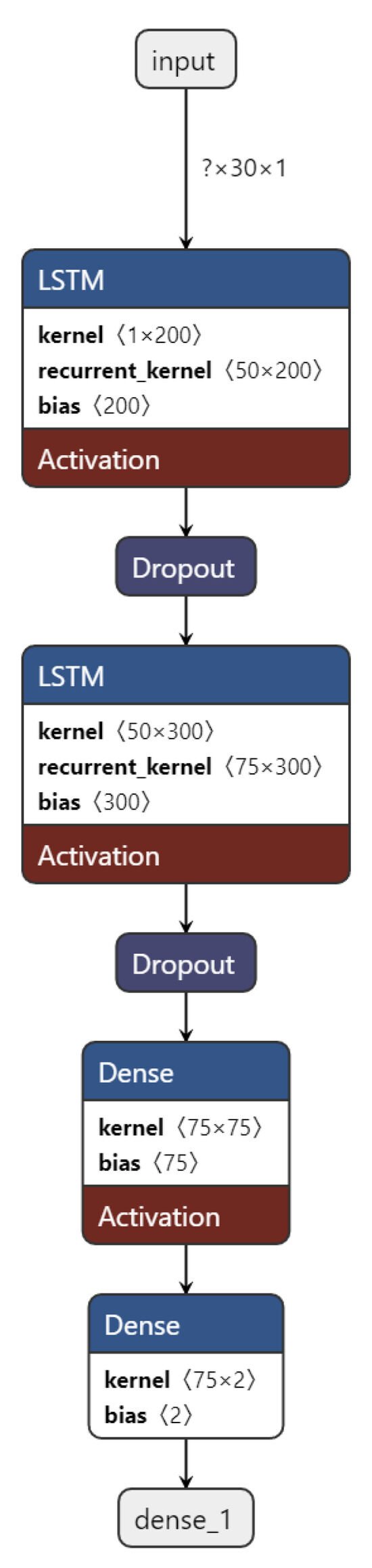 The LSTM model is designed to accurately deliver new left and right speeds to the motors, striking a balance between complexity and regularization to optimize performance while mitigating overfitting. Figure 11 illustrates the network model used in this implementation. Table 3 lists the network parameters.