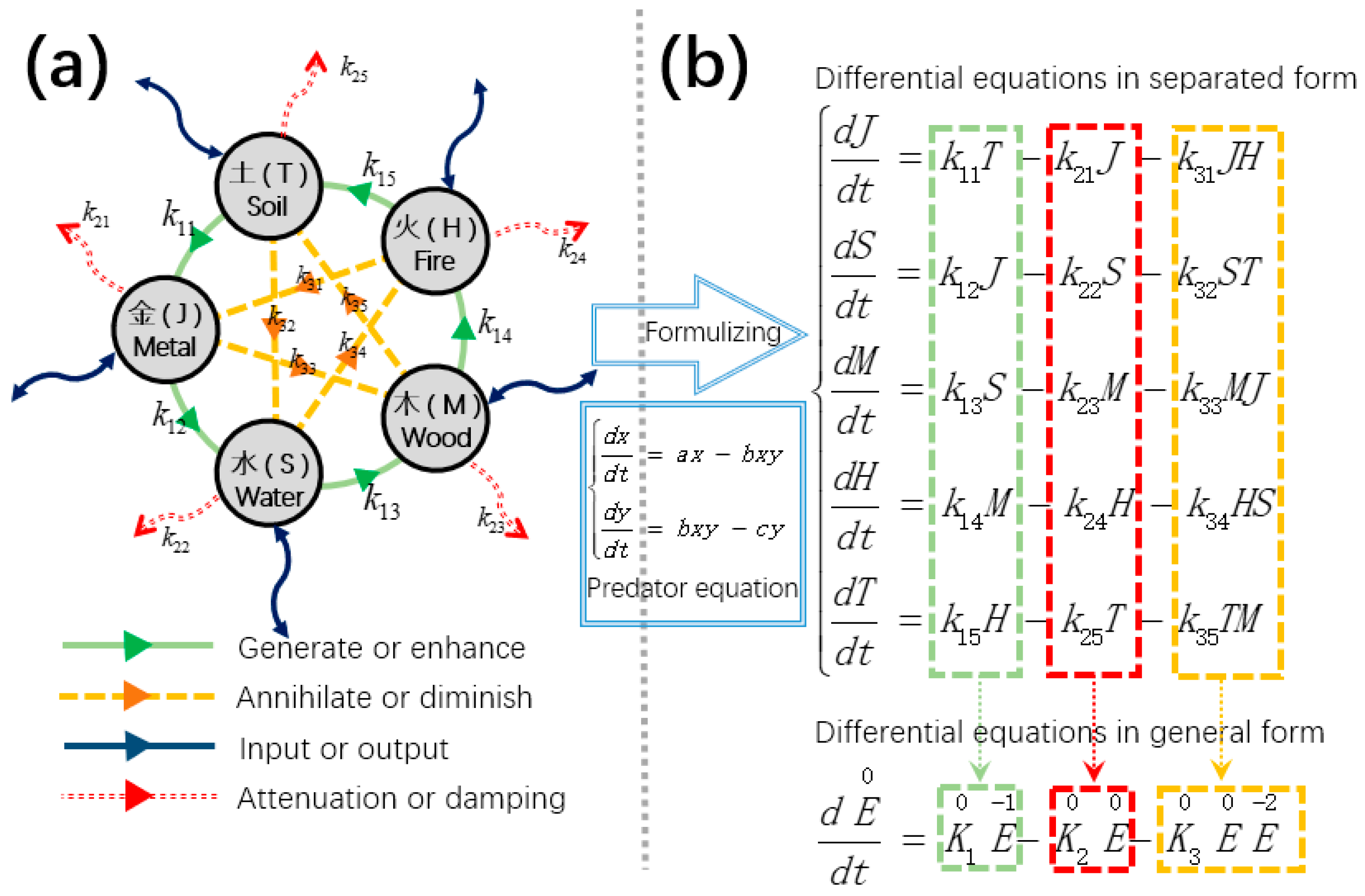- Quantification of influence strength: Causal distance provides not only a qualitative description of transmission paths but also a means for quantitative assessment when combined with coupling coefficients. In the aforementioned example, the direct dependency of J on k11 results in a strong and rapid effect, while the impact of k15 is attenuated due to intermediate transmission. This approach introduces a quantitative scale for dynamical systems, facilitating accurate identification of key control parameters in sensitivity analysis or parameter tuning tasks.