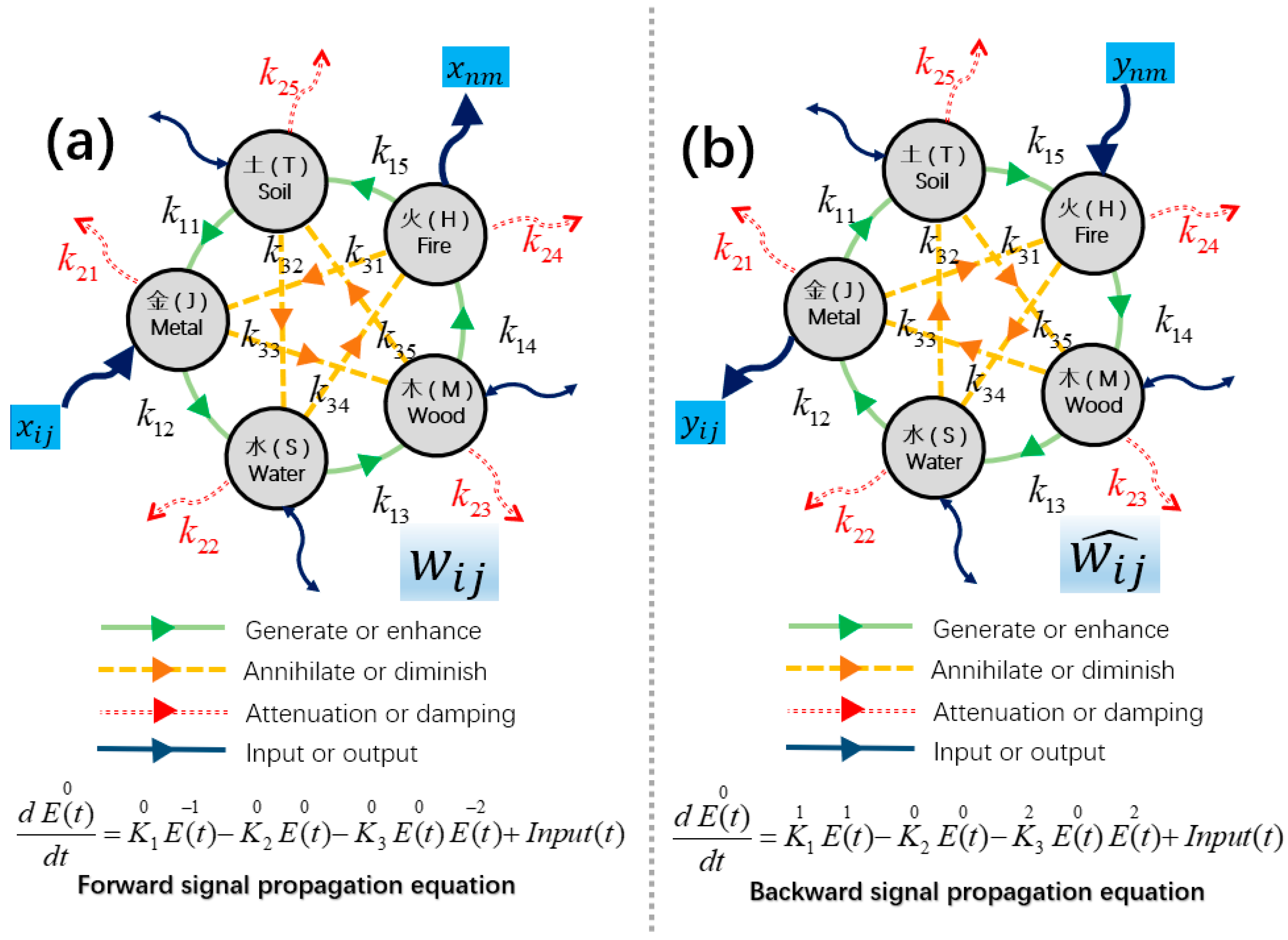 Signal source | Defined by input signal and nonlinear function | Generate perturbation signal from input signal |