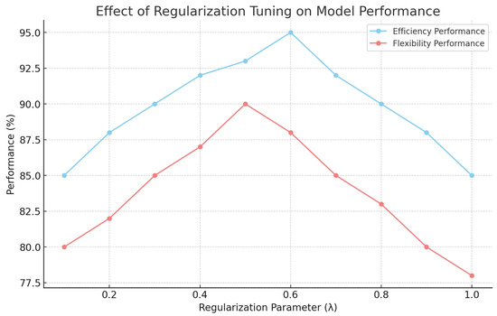 Effect of regularization tuning on model performance, highlighting the optimal range for efficiency and flexibility.