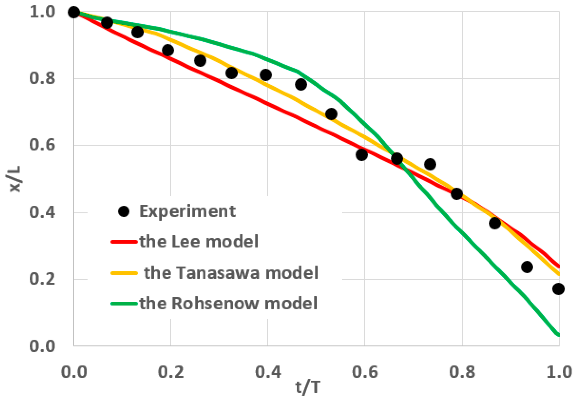 - Kamei, S.; Hirata, M. Condensing phenomena of a single vapor bubble into subcooled water. Exp. Heat Transf. Int. J. 1990, 3, 173–182. [Google Scholar] [CrossRef]