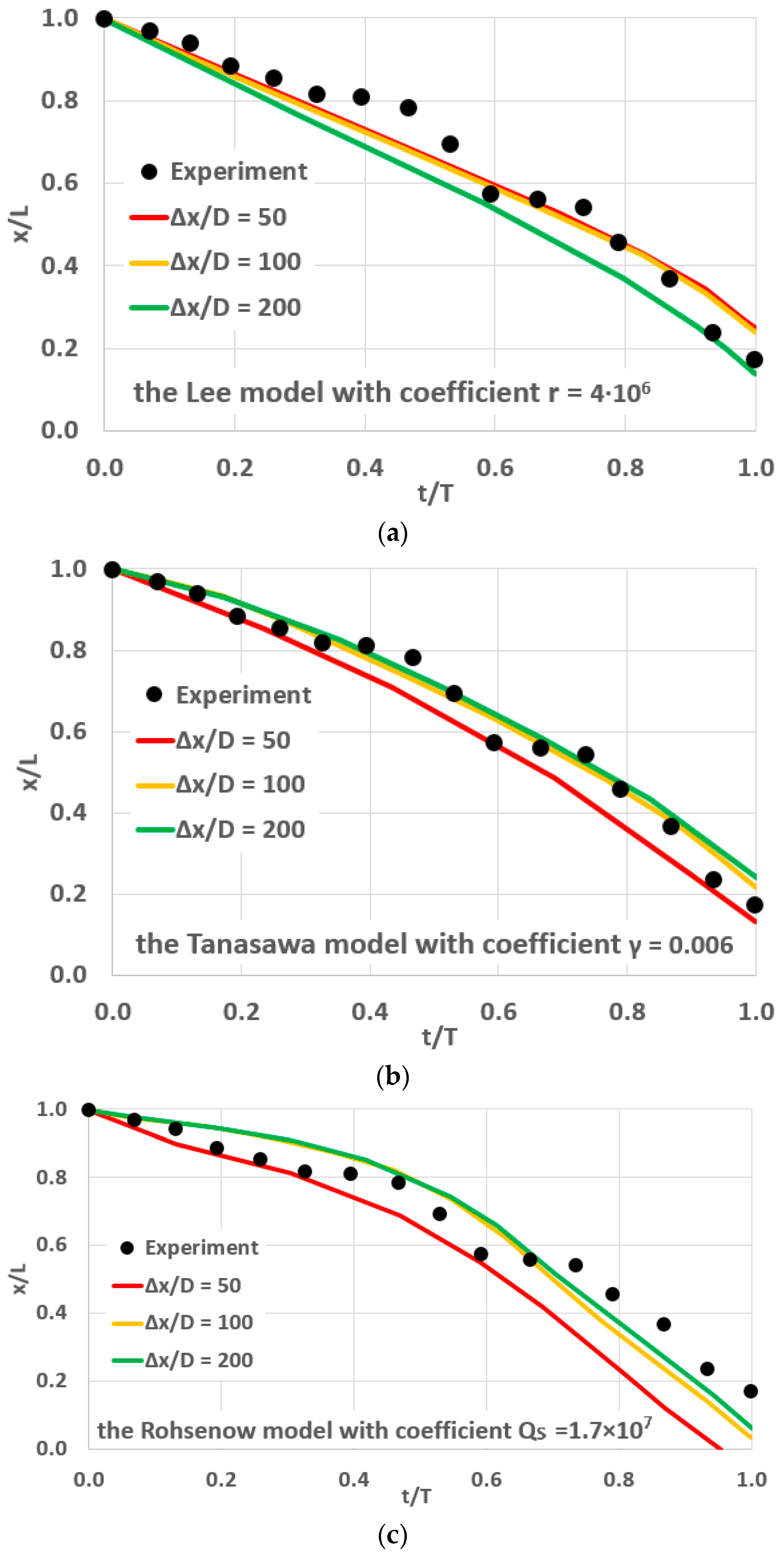 - Hardt, S.; Wondra, F. Evaporation model for interfacial flows based on a continuum-field representation of the source terms. J. Comput. Phys. 2008, 227, 5871–5895. [Google Scholar] [CrossRef]