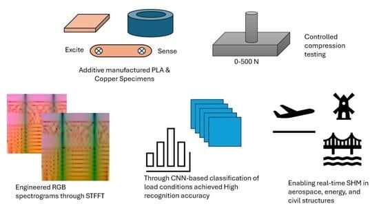 - Ahmed, S.; Bodaghi, M.; Nauman, S.; Khan, Z.M. Additive Manufacturing of Flexible Strain Sensors Based on Smart Composites for Structural Health Monitoring with High Accuracy and Fidelity. Adv. Eng. Mater. 2023, 25, 2300763. [Google Scholar] [CrossRef]
