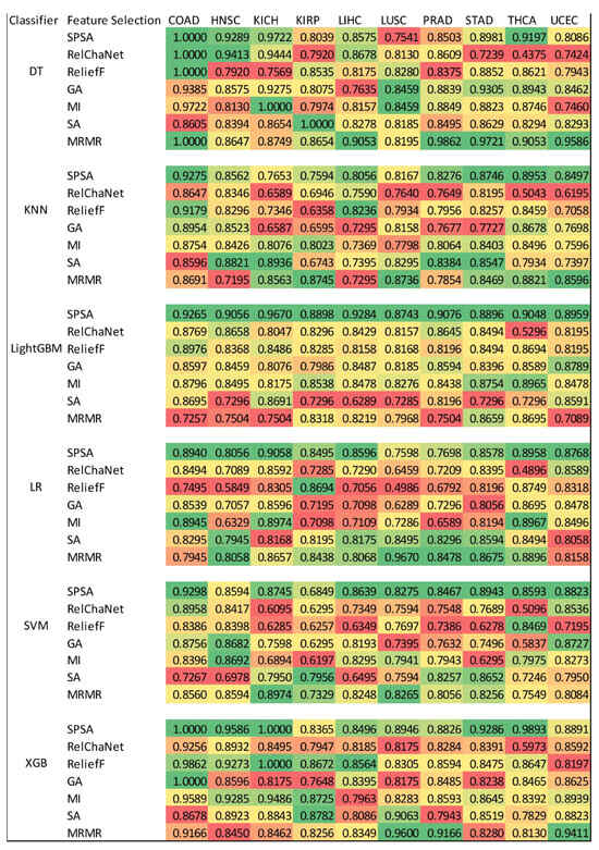 | STAD | SPSA | 0.9703 | 0.9664 | 0.9398 | 0.9524 | 0.8605 |