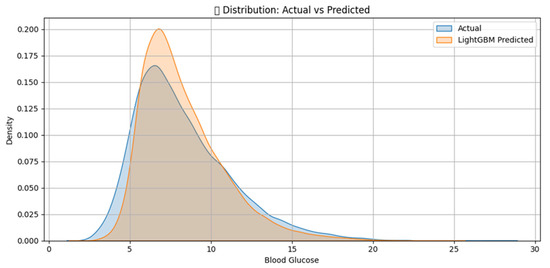 In conclusion, the visualizations in Figure 5 and Figure 6, along with the quantitative metrics in Table 3, jointly support the clinical and technical validity of the hybrid GIM–LightGBM framework, see also Table 4. Its capacity to provide not only accurate point forecasts but also interpretable physiological context and predictive uncertainty renders it a compelling candidate for integration into real-time decision-support systems for individuals with Type 1 diabetes. The program code for the computer implementation of the LightGBM method on Python code as well as the generation of all Figure 1, Figure 2, Figure 3, Figure 4, Figure 5 and Figure 6 and numerical results could be found in Supplementary Materials.