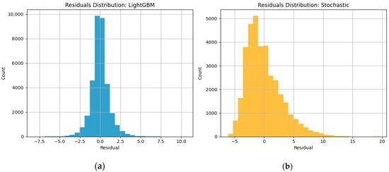 Normally distributed residual plots of LightGBM and Stochastic models.