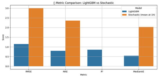 Comparison of different metric errors for LightGBM and Stochastic models.